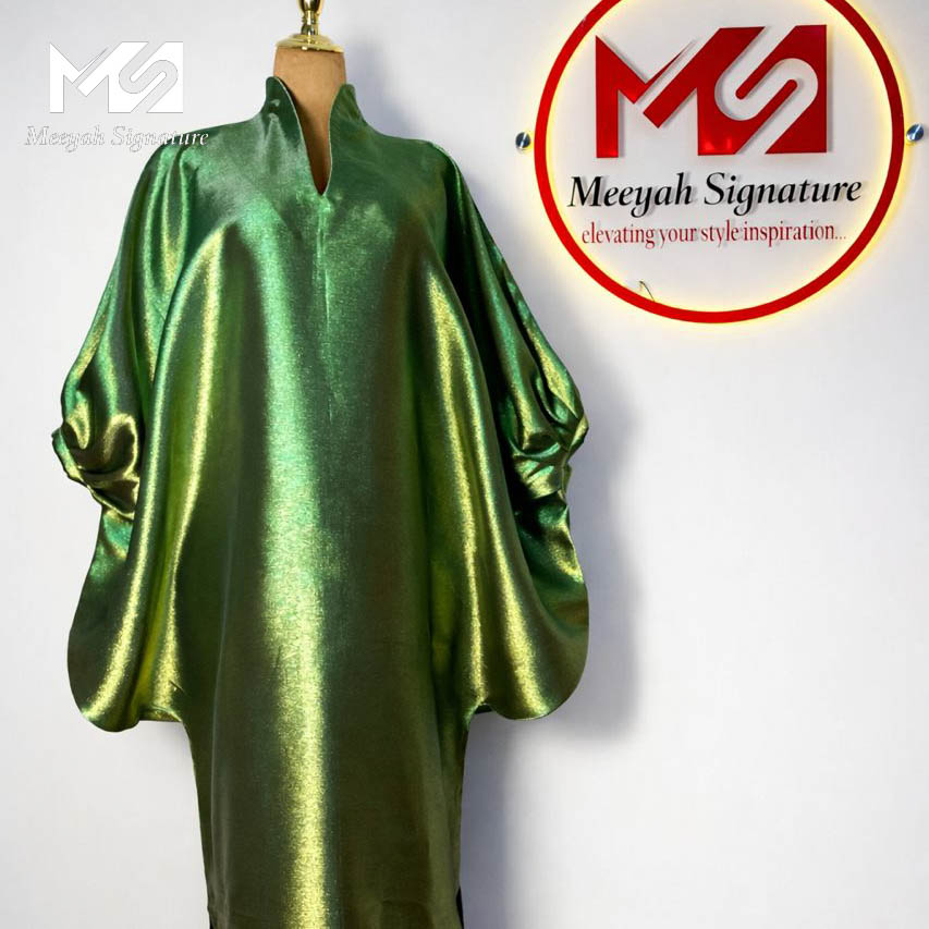 The Rich Aunty Kaftan is tailored from a luxury shimmering fabric that gives a bold yet elegant statement. Designed with a built-up neckline and stylish side slits. Perfect for when you want to step out looking confident, classy, and effortlessly rich.